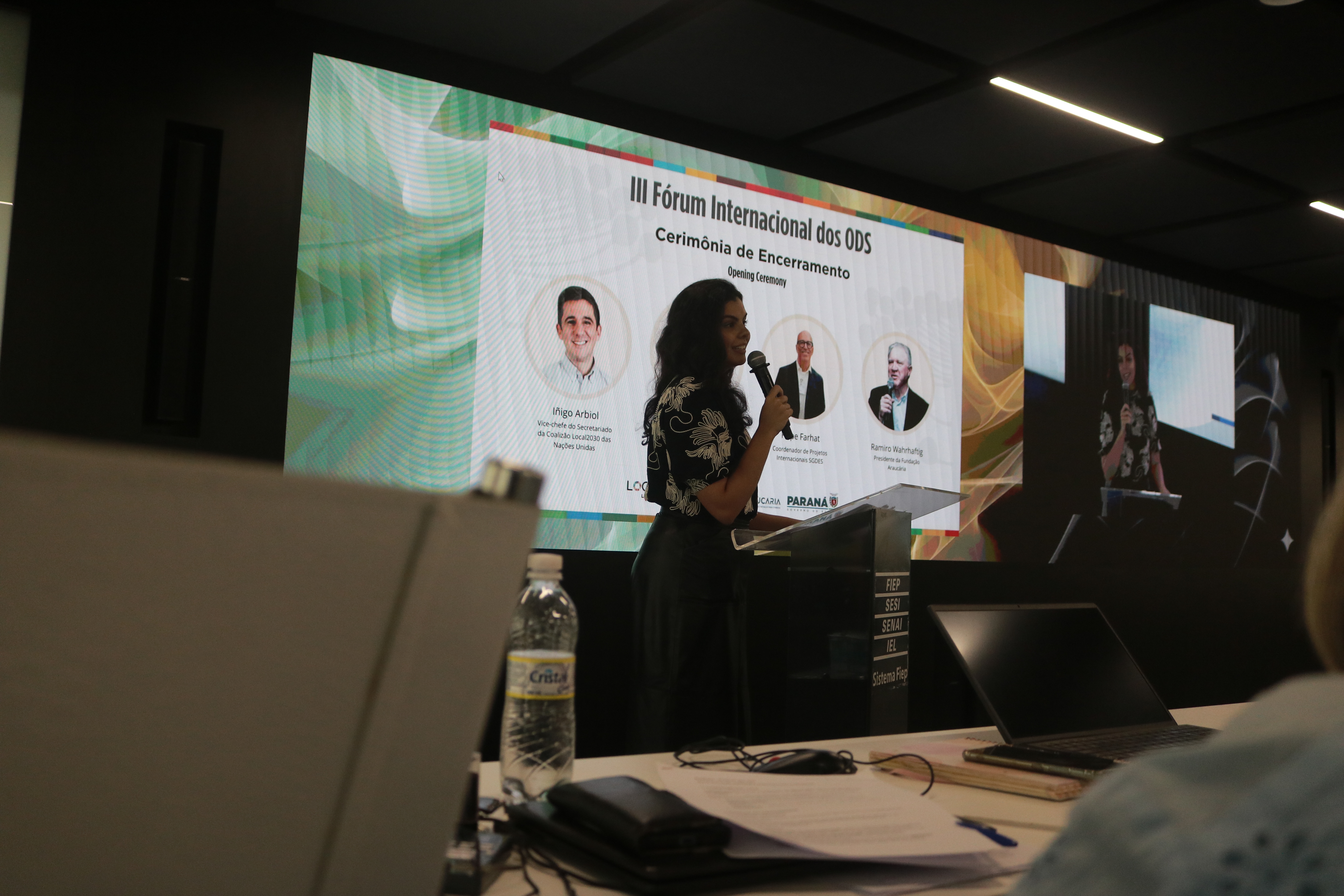 Ao final do seu segundo dia, a última sessão contou com a palestra da vice-diretora de Engajamento Comunitário da Universidade da África do Sul, Genevieve James, destacando a importância de integrar o conhecimento acadêmico aos saberes tradicionais e às necessidades das comunidades locais. Já em sua encerramento, a plenária final do III Fórum Internacional dos ODS finalizou sua programação com a relatoria da Declaração do Paraná, documento de comprometimento dos co-organizadores que sintetizou os relatos tecnicos dos eixos temáticos abordados durante o evento e sinalizoa o empenho dos atores não só para o avanço da Agenda 2030 localmente, mas também para com o seu avanço no pós-Agenda.